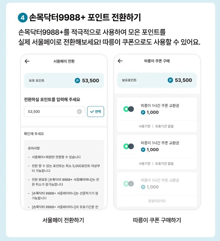 손목닥터 9988 프로그램은 건강 활동을 통해 포인트를 적립하고, 이를 서울페이로 전환하여 현금처럼 사용할 수 있는 혜택을 제공합니다.