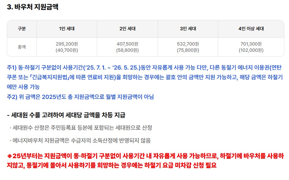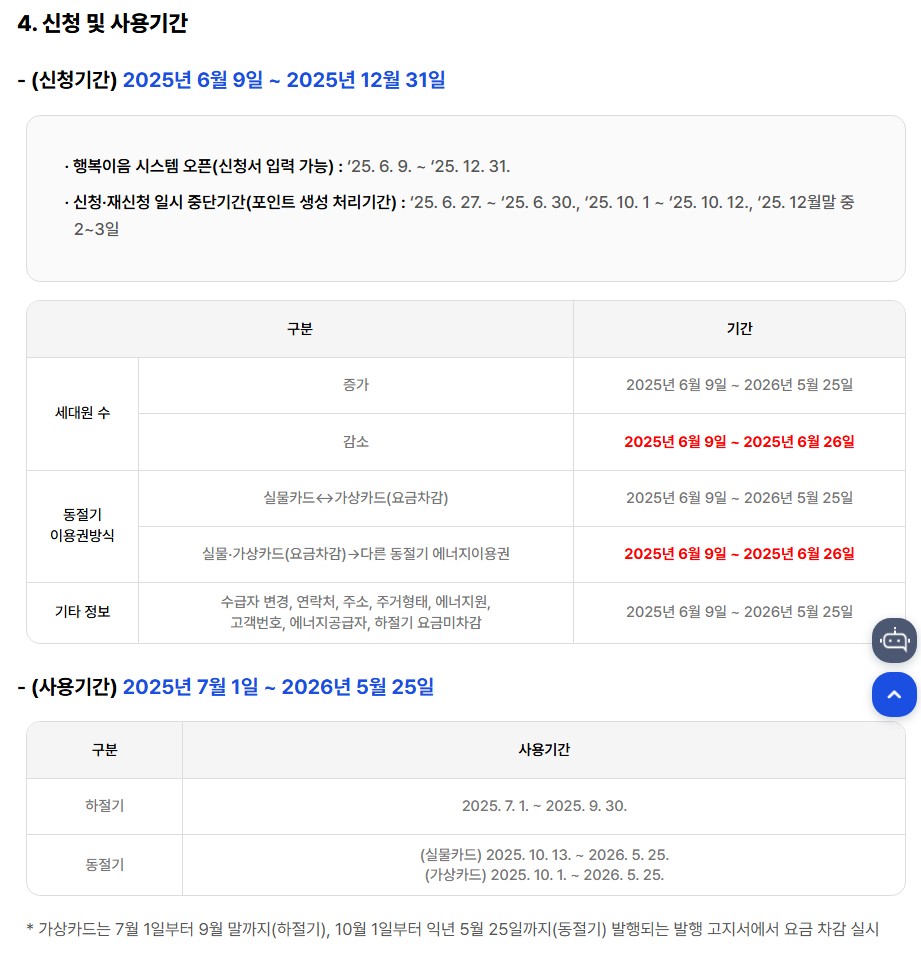 - 자동 신청이지만, 세대원·주소·에너지 형태 변경 시에는 반드시 재신청 필요