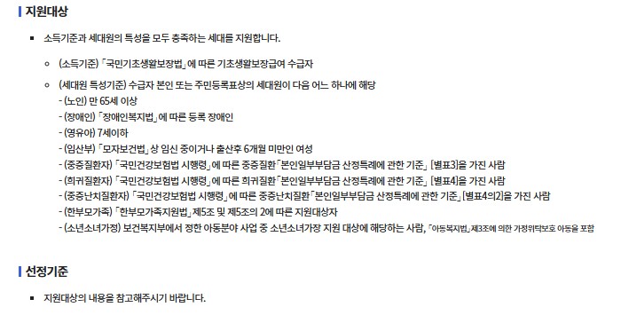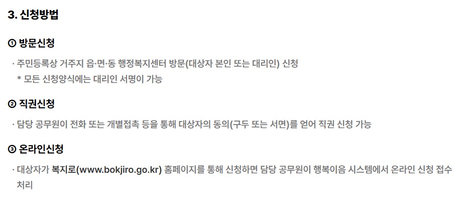 - 신청 기간 내 읍·면·동 행정복지센터, 복지로 온라인 중 선택
